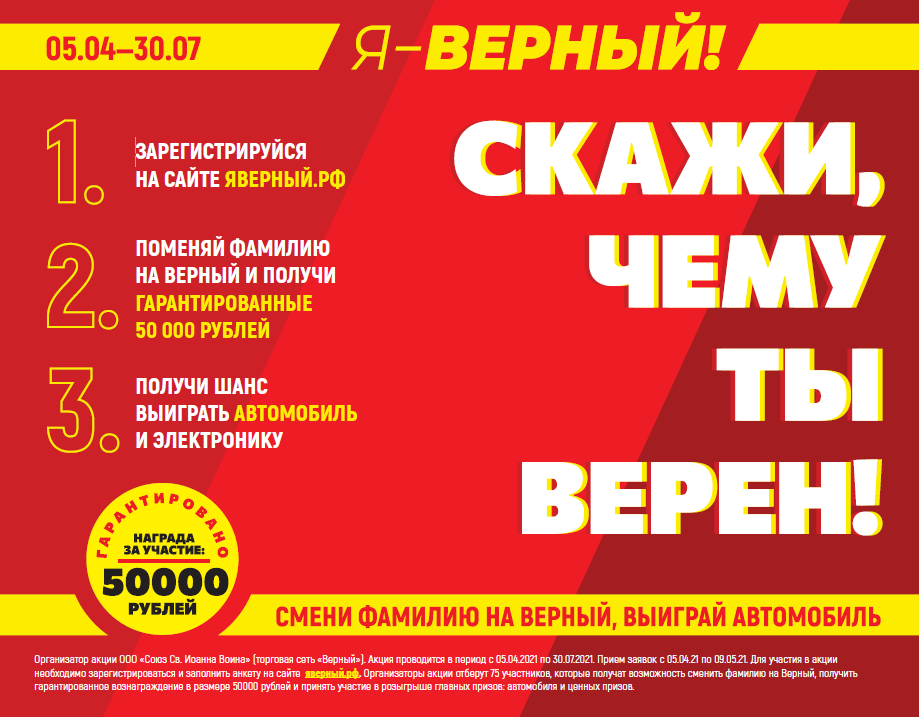 Торговая сеть «Верный» запустила рекламную кампанию «Я – Верный». Главный приз - автомобиль