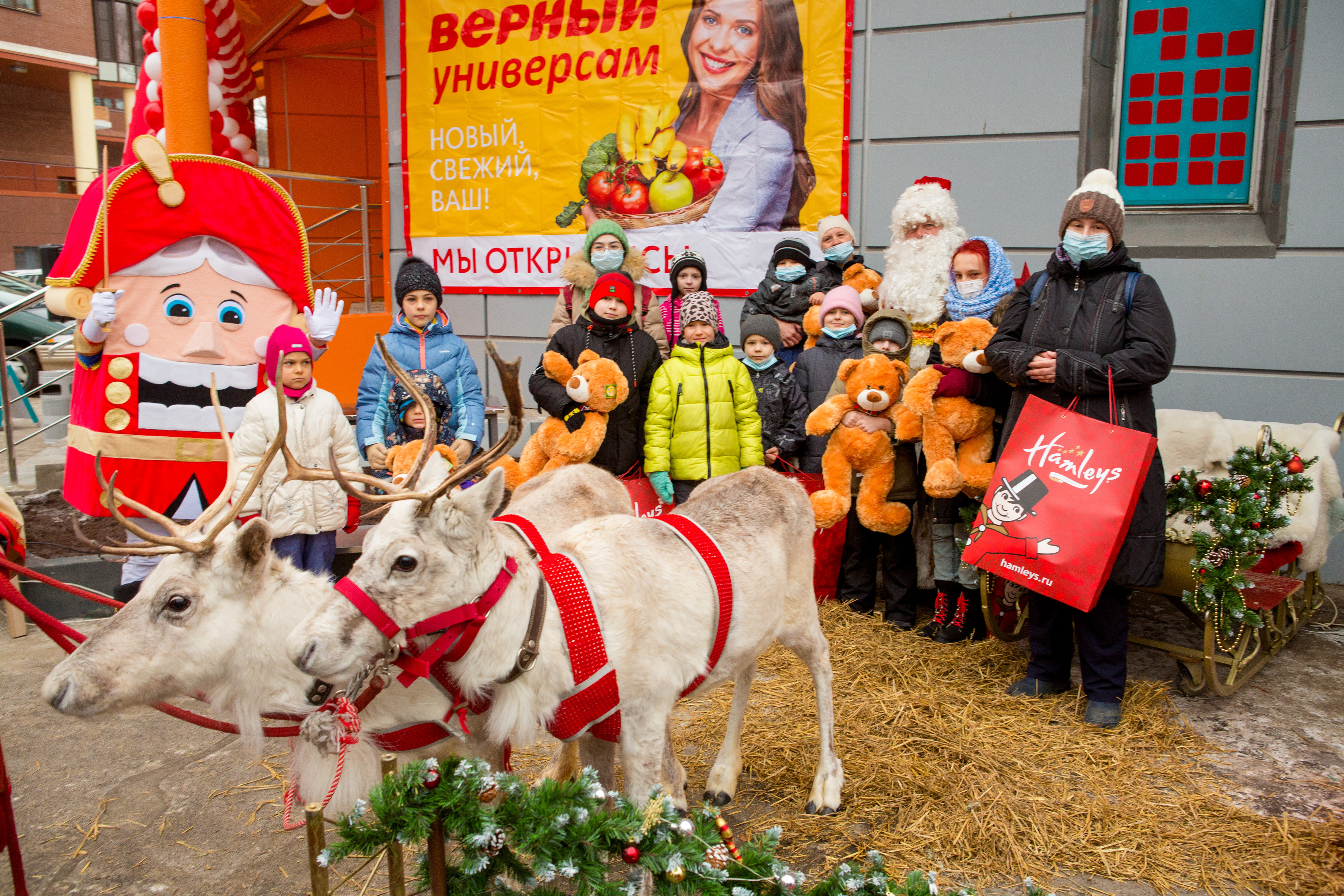 943 магазин торговой сети «Верный» открылся в районе Филевский парк. В честь события к магазину высадился новогодний десант: Дед Мороз с настоящими оленями